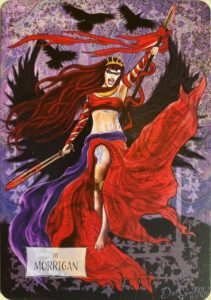 De Morrígan, de drievoudige godin van dood, strijd en transformatie, waakt over deze drempel. Ze daagt je uit om te kijken naar wat je liever niet onder ogen komt. Ze fluistert: “Wees niet bang om te laten sterven wat jou niet meer dient.” In haar gedaante van raaf herinnert ze ons eraan dat alles wat vergaat, terugkeert tot het grote geheel.