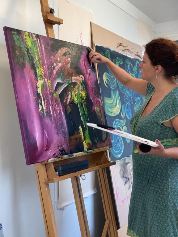 Mijn aanpak is speels, aards en tegelijk diepgaand. Soms werk ik met verf, soms met woorden, soms in stilte. Maar altijd met aandacht, openheid en liefde voor het proces. Want dát is waar groei begint: in het durven zijn met wat er is.